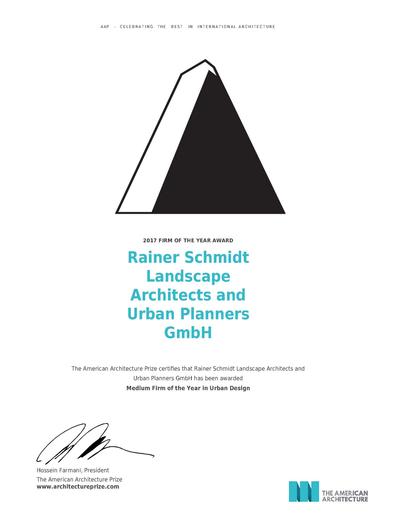 4 August 2017, Rainer Schmidt Landscape Architects and Urban Planners have received the