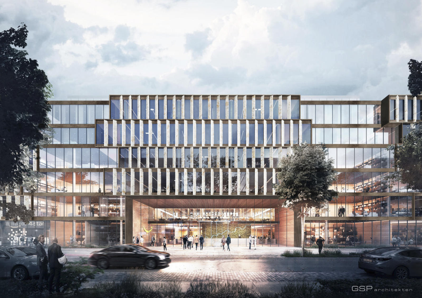 The new office and administration building with shops for daily needs and gastronomic offers is being built along Anni-Albers-Strasse and Lyonel-Feininger Strasse in Parkstadt Schwabing. It represents the new Amazon location and is scheduled to officially open in 2024.