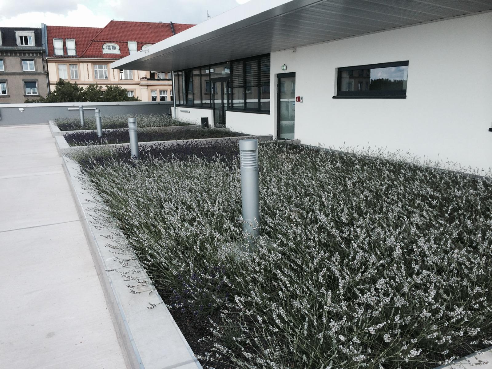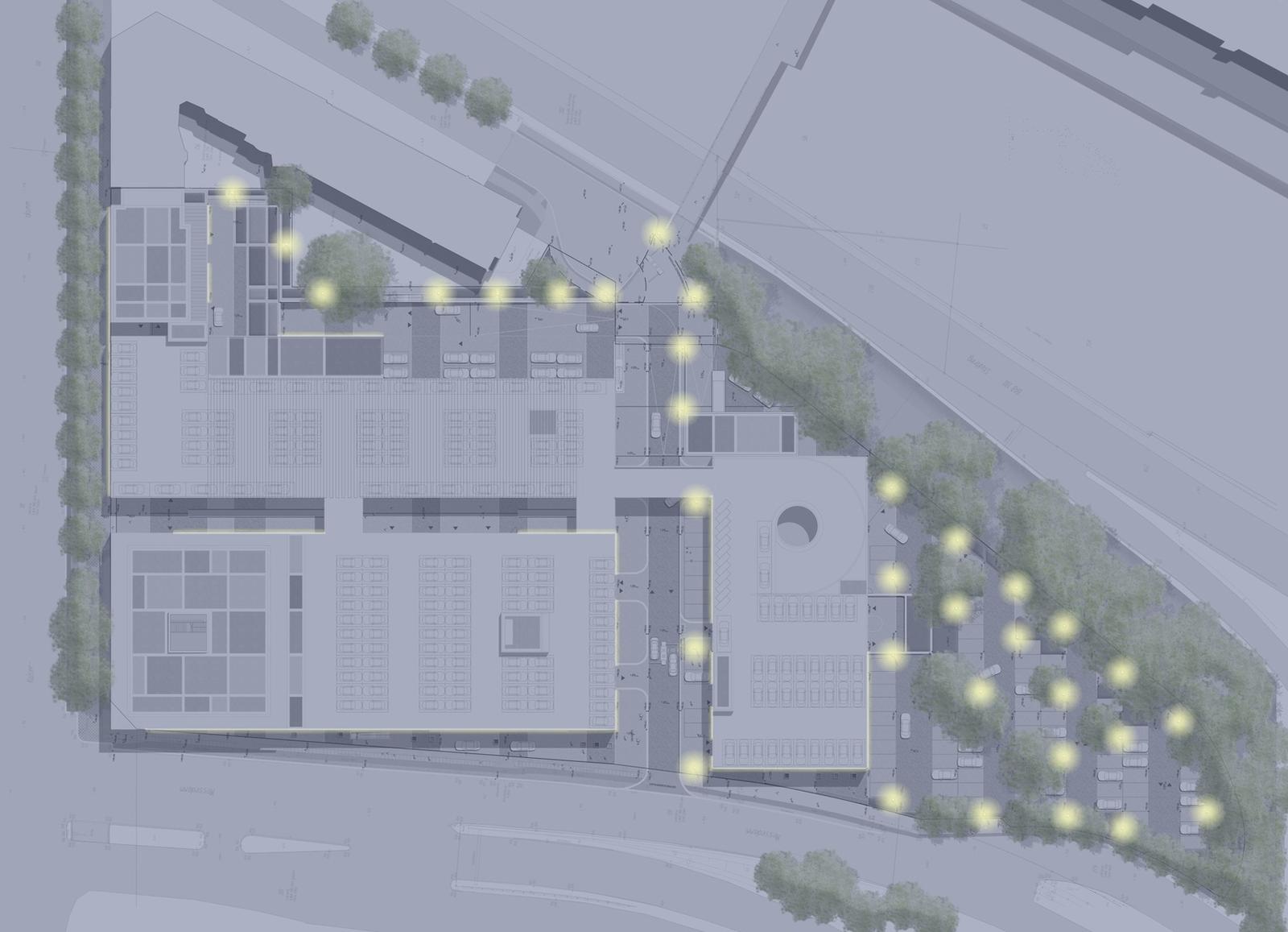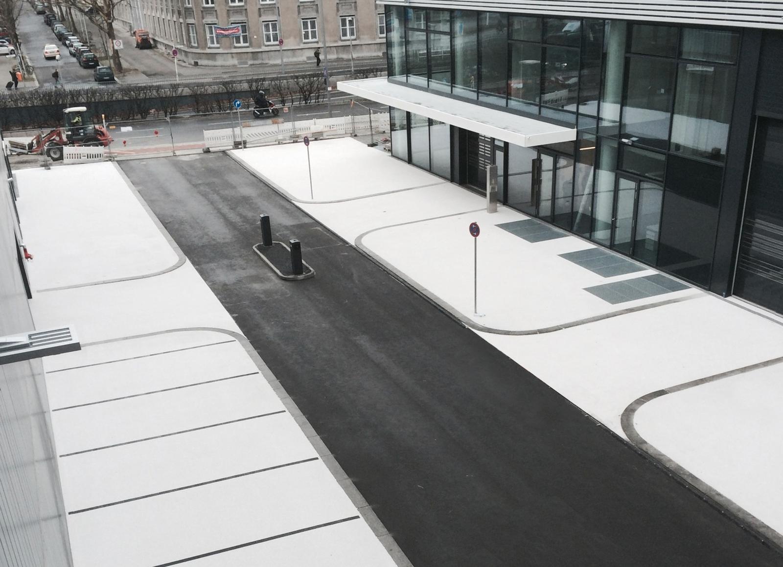 The new BMW branch in Berlin at Kaiserdamm is – as industrial use – architecturally in a subtle way integrated into the urban context. The open space design concept serves for binding the built form with its parts and sections almost completely by a broad-striped-pattern of surface design, connecting to the car-parking area in the front and thus making it perceivable for employees and visitors as a unit of use within the city. Large-centryn trees flank the three sides of the site differently; the car-parking area gains value from tree-planting as well.