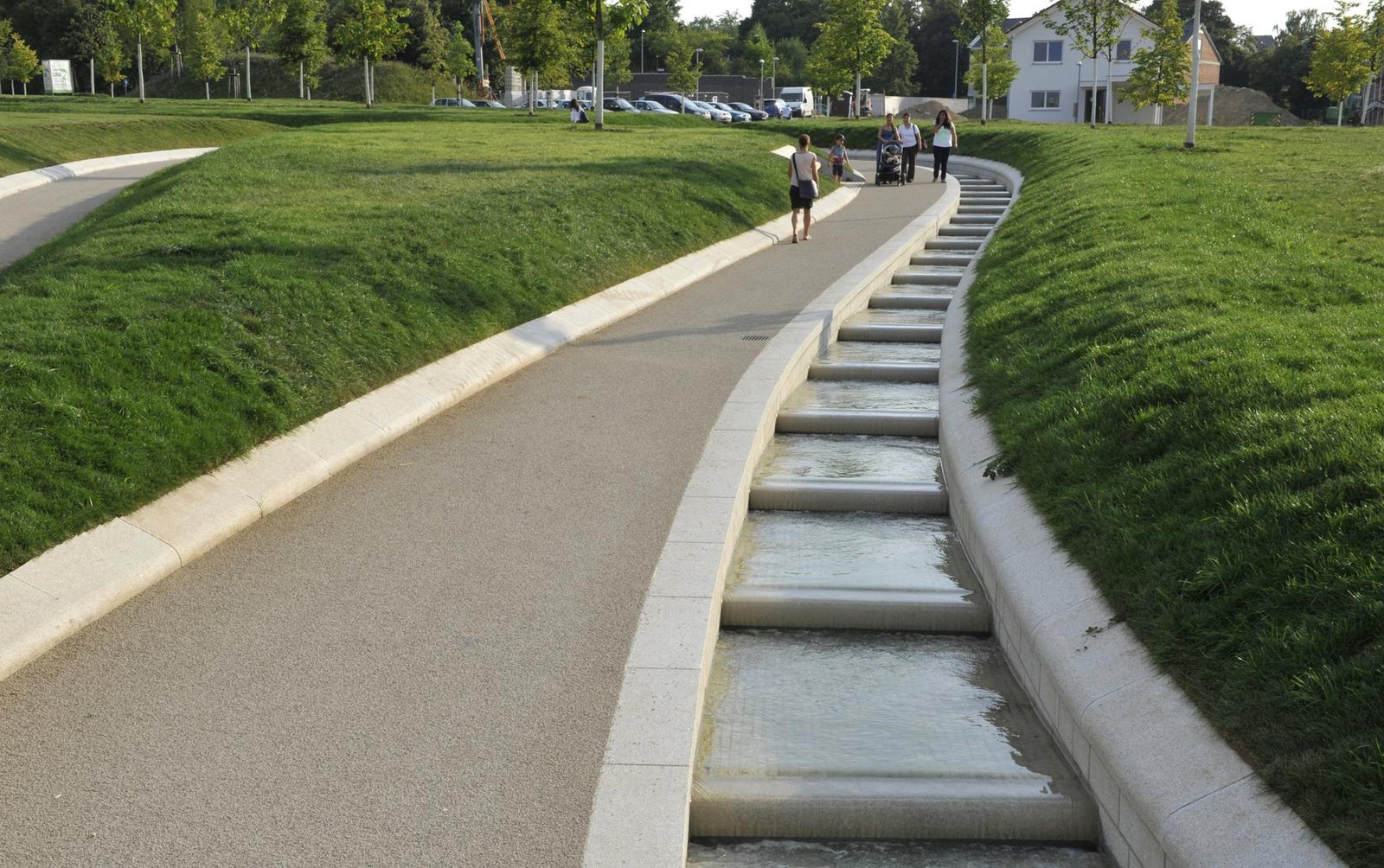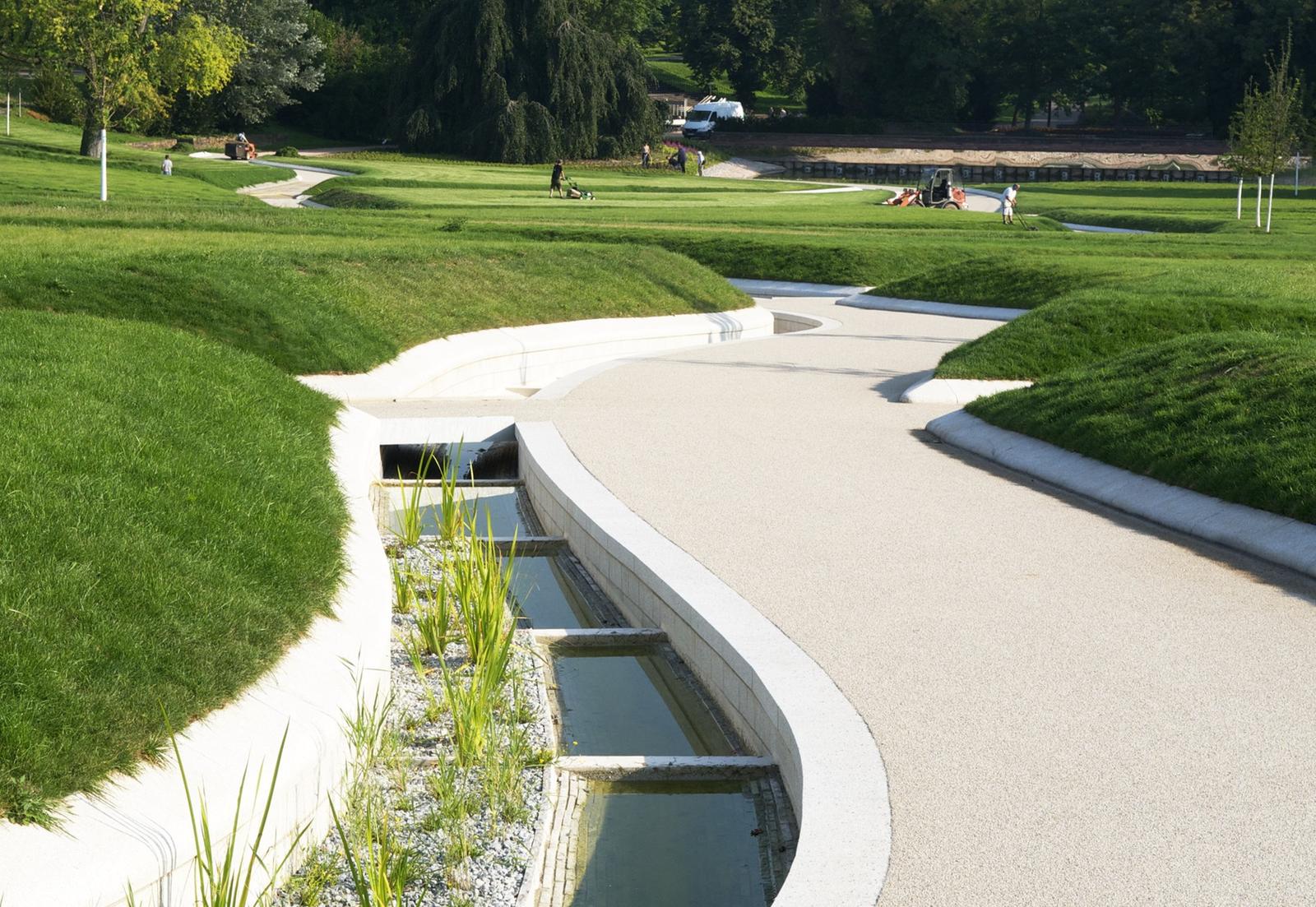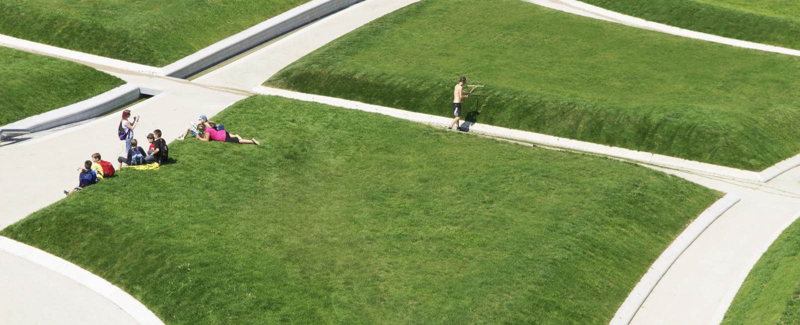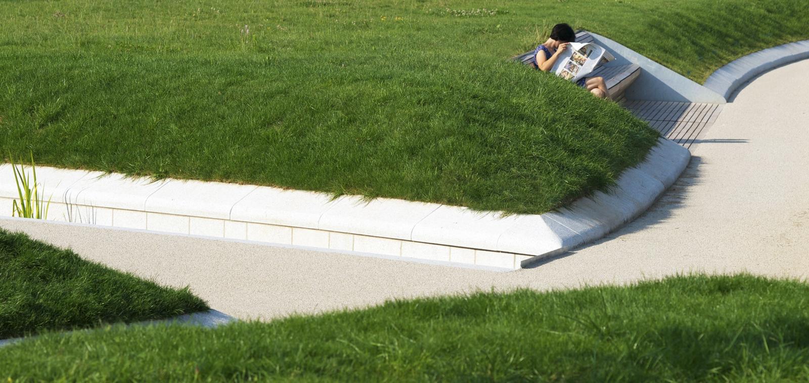 The history of the height park Killesberg has its origin in the industrial use of the areal as a quarry. The park represents one of the most important and largest parks of the city of Stuttgart. The task is an open process with the premise, to create a forward-showing concept for the extension of the park Killesberg, combining ecology with economy and preparing for a new urban living environment. The design concept is to be understood as the inheritance of two themes, defining the Killesberg: the man-made quarries as hard topographies and the soft, close to nature landscape. The moving topography, made of grass-pillows and sunken paths, provide for a variety of different perspectives while walking through and mark additionally a coherent identity for bridging towards the height park Killesberg and towards the new areas of built form. The grass pillows of the park generate living environments for a variety of flora and fauna by their micro-climate conditions.