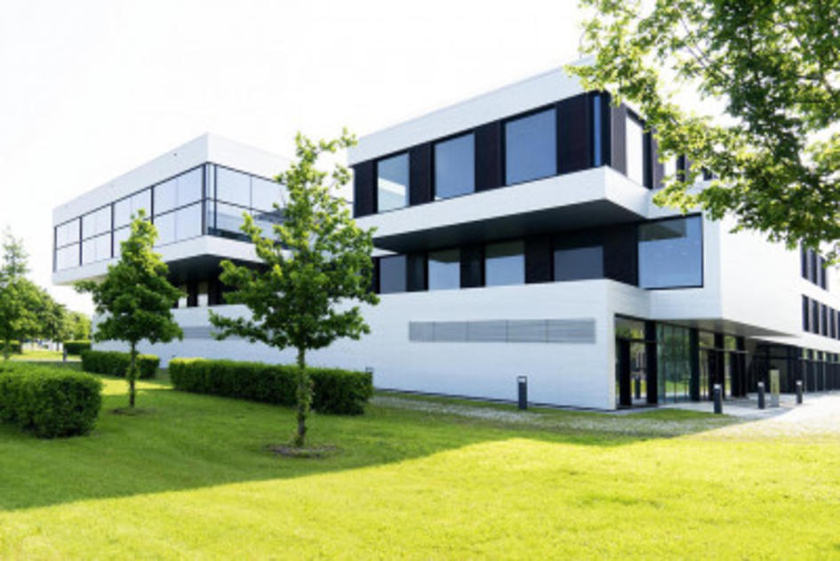 Diese Bürobebauung beansprucht einen exklusiven Raum auf unbebauter Flächen. Die Bebauung ist kompakt und wird durch unterschiedliche Freiräume raumbildend gerahmt. Aufenthalts-und Stellplatzflächen werden gleichermaßen hochwertig gestaltet und für die Adressbildung des Standortes genutzt. Materialien, Strukturen und Texturen der Anlage der Freiräume werden zu eindeutig erkennbaren Synthesen für Teilräume hin geführt.  Es ergibt sich so eine Integration der Bebauung in die neu gestaltete Landschaft.