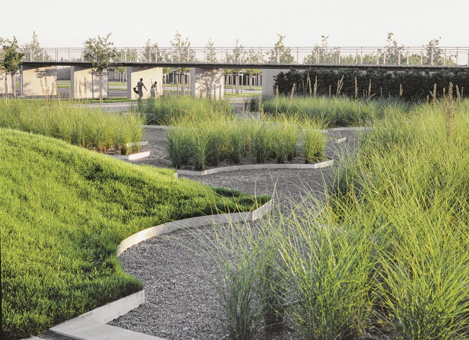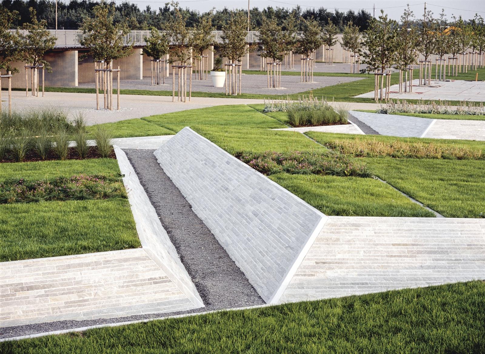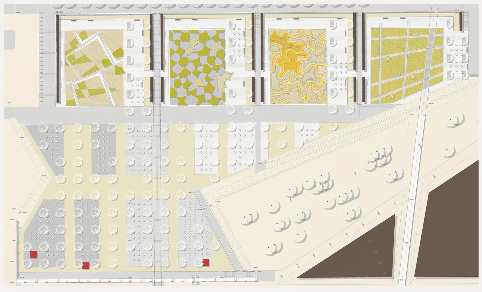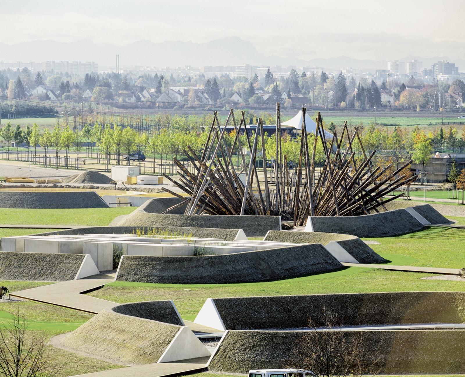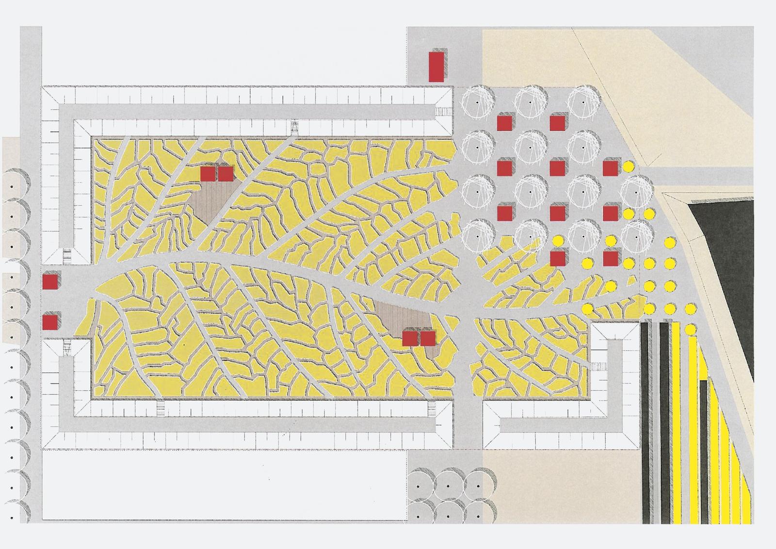 The organic, as the basic structural pattern of every herbal life, becomes the form-giving theme for the central exhibition areas. The setting into scene of changes of perspective, micro-macro, pervades the whole Garden-Show like a red thread of different expression. Within the gardens of potencies, the self-similarity of microscopic plant structures serves for new garden images. The parallel gardens are determined by few elements: Cut hedges, woody plants, and in East-West-direction running trails form elongated parallel spaces. Also in the leaf garden, the macro projection serves as a role model for structuring the exhibition area.